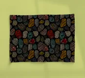 Un ricco motivo astratto con forme organiche e superfici strutturate in colori caldi come verde acqua, rosso ruggine, giallo oro, corallo, beige e blu su sfondo nero. Perfetto per gli amanti dell'arte astratta, gli appassionati di texture, i fan dei colori caldi e tutti coloro che apprezzano le forme organiche con dettagli artistici e la raffinatezza della terra.