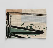 Forme astratte e linee decise si fondono in un equilibrio di colori tenui, creando una composizione dinamica. Le forme organiche si intrecciano, mentre sprazzi di verde aggiungono profondità e movimento.