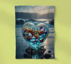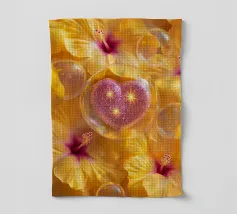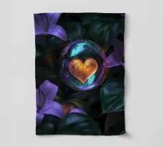Cuore romantico con fiori di ibisco rossi - Questa vibrante opera d'arte presenta un cuore scintillante in una bolla trasparente, che fluttua tra fiori di ibisco rosso brillante in piena fioritura. Le foglie verdi e i petali rosso intenso creano un contrasto sorprendente, mentre la luce del sole si riflette magnificamente sulla bolla, aggiungendo un'atmosfera sognante e stravagante. Questo quadro è ideale per aggiungere un tocco di romanticismo e di eleganza ispirata alla natura a qualsiasi ambiente.