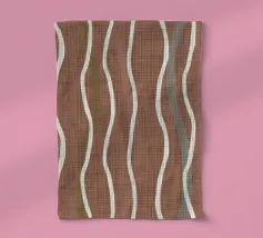 Retro Wavy Lines Tapestry PANTONE 18-4417 - Mid Century Modern Geometric è un disegno di grande impatto, caratterizzato da linee ondulate nei toni ricchi e rilassanti di PANTONE 18-4417. Questo motivo trasmette l'essenza dell'arte moderna della metà del secolo, fondendo l'eleganza retrò con un tocco contemporaneo. Perfetto per l'arte murale, i tessuti e l'arredamento della casa, questo disegno senza tempo aggiunge raffinatezza e movimento dinamico a qualsiasi spazio.