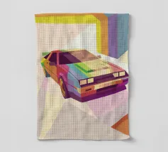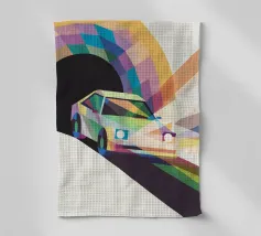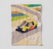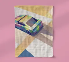 Illustrazione di un'auto colorata sulla strada con uno stile geometrico moderno.