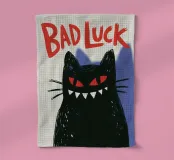 Un gatto nero con gli occhi rossi e un ghigno dentato: questo disegno gioca con le superstizioni con umorismo e audacia. La scritta "Bad Luck" accentua il suo lato ribelle e stravagante. Ideale per gli amanti delle grafiche incisive, del simbolismo mistico, di Halloween o del secondo grado. Perfetto per un arredamento originale dal sapore dark-pop, che unisce la sfortuna a un devastante stile felino.