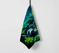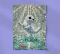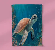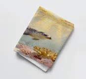 Una foca maculata scivola pacificamente tra le dolci onde, circondata da coralli che brillano nelle calde tonalità dell'oro e del blush. Quest'opera d'arte rivela il lato tenero dell'oceano: calmo, radioso e pieno di bellezze estetiche sotto la superficie baciata dalla luce del sole. Immaginato da Trinkets NL Design Studio, visualizzato con l'aiuto dell'AI.