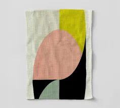 Ispirata all'estetica moderna del Bauhaus e della metà del secolo scorso, questa opera d'arte presenta audaci blocchi geometrici in giallo, verde, blu, nero e bianco sporco. Le sue linee pulite e i forti contrasti catturano l'armonia senza tempo del design modernista.