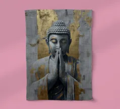 Questo sublime poster mostra una statua di Buddha in posizione di preghiera, circondata da delicati viticci dorati. La rappresentazione fotorealistica con toni caldi dell'oro e freddi dell'argento ricorda l'arte antica dei templi, combinata con una visualizzazione 3D contemporanea. Gli effetti delle intemperie e la morbida patina conferiscono all'opera una profondità spirituale. Perfetto per gli ambienti che devono emanare calma e consapevolezza. Una dichiarazione forte per chiunque apprezzi la saggezza orientale e l'atmosfera meditativa: una spiritualità senza tempo per la casa moderna.