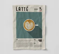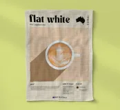 tazza caffè latte art bevanda bevanda tazza espresso latte cotto a vapore infografica testo menu caffè Australia etichetta tipografia contorno paese colore marrone fumoso sfondo beige sezione "Informazioni dove bere elenco ingredienti