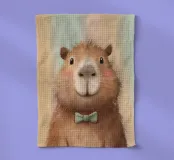 Un dolce capibara che tiene in mano un fiore rosa, vestito con un morbido blush.