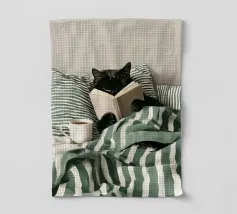 Date un tocco di morbidezza alle vostre pareti con questa illustrazione di un gatto nero comodamente a letto, immerso in un buon libro. Questa immagine rilassante crea un'atmosfera avvolgente, ideale per una camera da letto, un angolo lettura o qualsiasi spazio dedicato alla calma. Con il suo umorismo discreto e la sua tenerezza, è il regalo perfetto per gli amanti dei gatti, dei libri e di chi ama le atmosfere accoglienti.