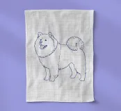 Disegno a linee blu di un chow chow. Il motivo è adatto solo su sfondi chiari.