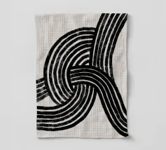 Una potente rete di linee nere che si piegano e si intersecano, come flussi di pensiero contrastanti su uno sfondo neutro. La composizione ricorda l'astrazione gestuale, con echi di Franz Kline e dell'arte dell'inchiostro giapponese. Nonostante l'austerità della tavolozza dei colori, si sviluppa una dinamica espressiva. Un'opera che trae tensione dalla riduzione e carica lo spazio di pura energia visiva. Anche su tessuti.