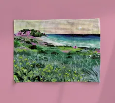 Sarah Gesek conferisce ai suoi paesaggi un'atmosfera da paese delle meraviglie ultraterreno con colori ricchi e porta mondi lontani nelle vostre case. L'artista di Seattle preferisce lavorare con colori acrilici su carta, ma anche con gouache, matite colorate, pastelli a cera e altro ancora. Ispirate dallo spettacolo naturale di rocce scoscese e giardini ondulati, notti stellate e cieli atmosferici, le opere di Sarah infondono un senso di vagabondaggio. Immergetevi, camminate e innamoratevi di nuovo del nostro mondo.