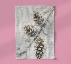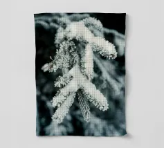 Questo suggestivo motivo mostra rami di abete in filigrana ricoperti da un delicato strato di neve e brina. I dettagli naturali e le calde sfumature di colore dei rami creano un'estetica invernale armoniosa e rilassante. Perfetto come murale, tazza, custodia per cellulare o cuscino, questo disegno porta in ogni casa la tranquilla eleganza delle giornate invernali innevate e la bellezza della natura. Ideale per gli amanti della fotografia naturalistica moderna e dell'arte invernale minimalista.