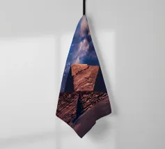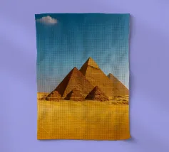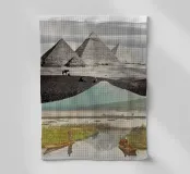 Un terreno da sogno cucito dal tempo e dal mito: All At Once fonde tre paesaggi iconici in un mondo surreale e senza luogo. Il tranquillo specchio del Monte Fuji di Kashiwabara (1896, Kazumasa Ogawa) si innalza nella silhouette delle Piramidi di El-Geezeh di Frith del 1858, il tutto coronato dalle eteree dune di White Sands, nel Nuovo Messico, catturate dalla NASA. Insieme, queste scene dissolvono la geografia e la cronologia per evocare una tranquilla meraviglia cinematografica, dove vulcani e faraoni si incontrano davanti a dune simili a nuvole. Un portale per il muro e un pellegrinaggio per l'occhio.