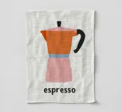 Un'affascinante illustrazione della cultura italiana del caffè: questa giocosa rappresentazione di una classica caffettiera per espresso affascina con la sua allegra combinazione di colori in arancione, rosa e azzurro. Lo stile pittorico naif con texture e macchioline visibili ricorda l'illustrazione scandinava e la grafica vintage di metà secolo. La forma ridotta e i contorni netti conferiscono all'oggetto quotidiano uno status iconico. La parola "espresso" sotto di essa funziona come una firma tipografica. Quest'opera allegra celebra la semplice bellezza del rito del caffè mattutino, perfetta per cucine e bar.