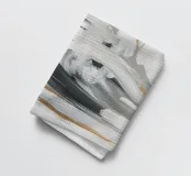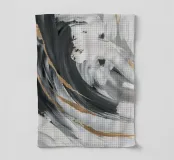Un'opera d'arte astratta dinamica dominata da ampie pennellate di grigi e bianchi, che creano un potente movimento vorticoso. La tavolozza monocromatica enfatizza la texture e il flusso energetico della composizione.