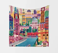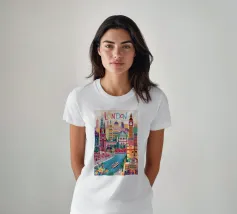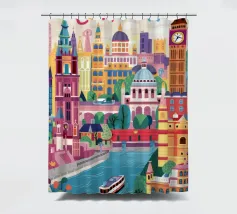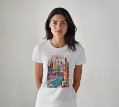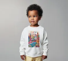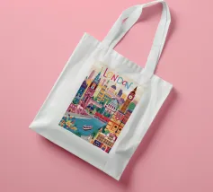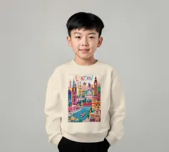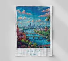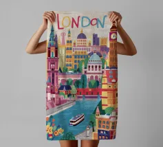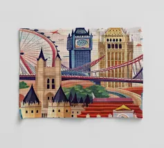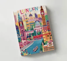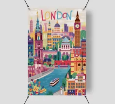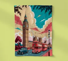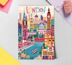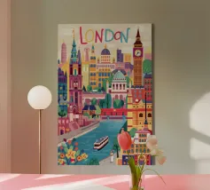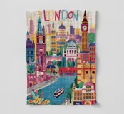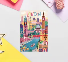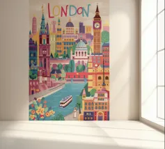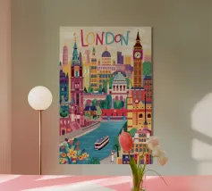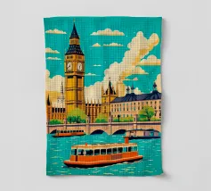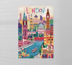 Un paesaggio londinese colorato e onirico, con il Big Ben e le barche, sembra uscito da una fiaba.