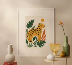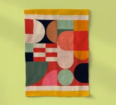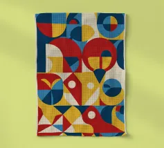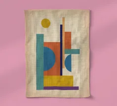 Questo poster colorato in stile Bauhaus moderno combina forme geometriche chiare e colori vivaci. La composizione è strutturata e giocosa allo stesso tempo: un vero e proprio richiamo visivo per qualsiasi casa o ufficio moderno.