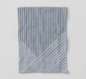Disegno astratto con sezioni di linee bianche diagonali e verticali su sfondo azzurro, che creano un motivo geometrico dinamico. Ideale per progetti di arredamento moderno e design grafico.