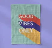 Una dichiarazione tipografica in tre potenti parole: GOOD - VIBES - ONLY. Ogni parola in un colore diverso, ogni linea con un'ombra lunga: visivamente forte, emotivamente chiaro. Lo sfondo verde pastello conferisce leggerezza, mentre il rosso, il blu e il giallo simboleggiano energia, calma e ottimismo.