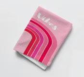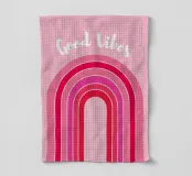 good vibes art, design arcobaleno rosa, estetica retrò, grafica allegra, messaggio edificante, stile minimalista colorato