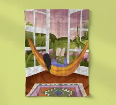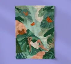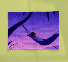 Immersa nel silenzio di un cielo color pesca, galleggia su un'amaca tesa tra le palme, senza peso, mentre il giorno scivola tranquillamente verso il tramonto. Le scimmie si appollaiano e giocano, le fioriture si avvicinano e l'intera giungla ronza con la comodità di non fare assolutamente nulla. È un momento fatto solo di luce del sole, di risate e di quiete, tenuto dolcemente tra le braccia del paradiso.