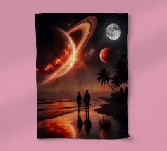 Un cuore colossale e consumato dalle intemperie fluttua serenamente sopra un vasto paesaggio incrinato, simbolo potente di un amore duraturo in un mondo desolato. Due piccole figure si ergono al suo cospetto, aggiungendo la scala epica e l'atmosfera cinematografica di questa opera d'arte surreale. Con i suoi toni vintage e le sue immagini che fanno riflettere, quest'opera è un invito alla conversazione e un tributo al grande viaggio dell'amore.