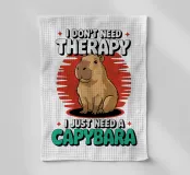 Un simpatico capibara si trova al centro di un disegno con il testo umoristico: "Non ho bisogno di terapia, ho solo bisogno di un capibara".