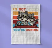 Due procioni con occhiali da sole viaggiano allegramente su un'auto rossa, con uno sfondo giocoso e colorato. La didascalia recita: "Io non sono strano, tu sei noioso".