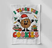 Un allegro biscotto con un cappello da Babbo Natale è circondato da decorazioni festive, libri e cioccolata calda. La scritta "Insegno ai biscotti più intelligenti #tistheseason" aggiunge un messaggio giocoso e a tema natalizio.