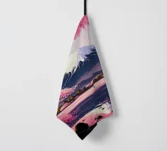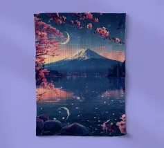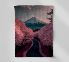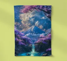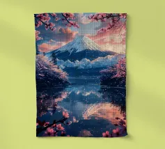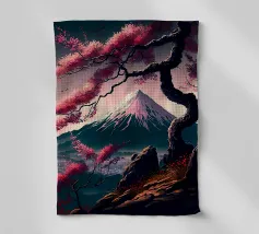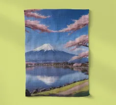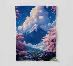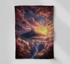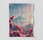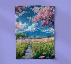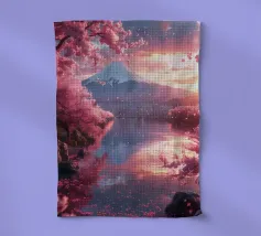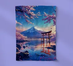 Una vista mozzafiato del maestoso Monte Fuji che si staglia nel cielo limpido di primavera. In primo piano, delicati fiori di ciliegio (sakura) danzano nel vento, conferendo alla scena una poetica leggerezza. La combinazione tra la forza della natura e la bellezza dei fiori simboleggia la transitorietà, l'armonia e il profondo legame tra la cultura giapponese e la natura. Questa immagine cattura perfettamente la magia della stagione della fioritura dei ciliegi, ideale per opere d'arte da parete, calendari o diari di viaggio. Suggerimento: perfetto per tutti coloro che sognano di viaggiare o che vogliono portare un pezzo di tranquillità e di estetica giapponese nella loro casa.
