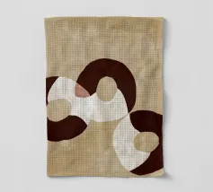 Una coppia di forme astratte domina la composizione in una combinazione di colori a due toni, evocando uno stile modernista. Le forme sono rese con bordi morbidi e una miscela di toni terrosi, creando un senso di calma ed equilibrio.