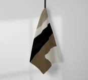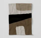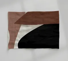 Forme astratte nei toni del marrone, del nero e del bianco si sovrappongono e contrastano tra loro per creare una composizione moderna e minimalista. Il design impiega una palette di colori sofisticati e sottolinea la forma e l'equilibrio, evocando un senso di calma e semplicità.
