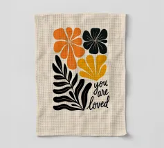 Elegante design retrò con foglie dai colori caldi e uno slogan ispiratore. Porta vibrazioni positive nella vostra casa - perfetto come decorazione o regalo.