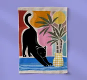 arte gatto nero, stampa gatto tropicale, poster astratto giungla, arte da parete animale moderna, illustrazione natura colorata, decoro felino audace, arte fauna minimalista, opera d'arte foglie tropicali, poster sole vibrante, decoro giungla boho, arte vaso geometrico, design gatto contemporaneo, stampa animale esotico, scena tropicale astratta, poster gatto artistico, decoro casa elegante, silhouette animale giungla, stampa moderna colorata, opera d'arte palma, arte tramonto giungla