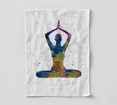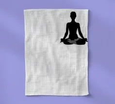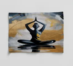 La silhouette di una donna seduta in meditazione con l'energia bianca che scorre intorno a lei. Il contrasto tra luce e buio riflette la consapevolezza e la chiarezza spirituale: perfetto per gli studi di yoga o per le case serene.