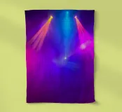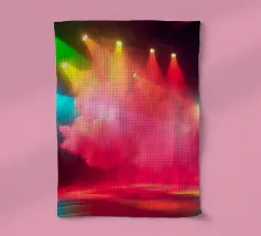 Vibranti fasci di luce colorata penetrano attraverso una nebbia, creando un'atmosfera energica in un luogo vivace durante un evento notturno, probabilmente un concerto o uno spettacolo.