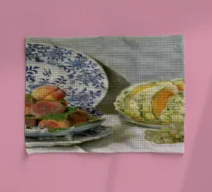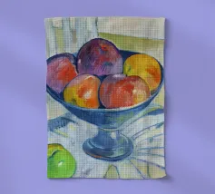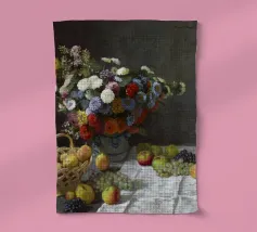 Un'affascinante natura morta del maestro impressionista Claude Monet, che mette in mostra la tranquilla eleganza degli oggetti quotidiani Presenta una disposizione rustica di mele e uva su un tavolo rivestito di bianco, immerso in una morbida luce naturale Cattura la bellezza fugace della frutta matura con pennellate sciolte e tonalità calde e autunnali Un'opera intima che si discosta dai famosi paesaggi di Monet e che è stata dipinta in casa durante il maltempo. Un'opera d'arte senza tempo e rilassante, perfetta per cucine, sale da pranzo o qualsiasi altro interno accogliente Regalo ideale per gli amanti dell'arte, per i cuochi o per chi apprezza l'estetica rustica e la natura morta