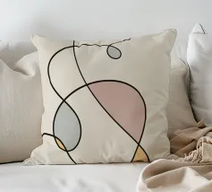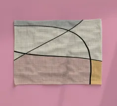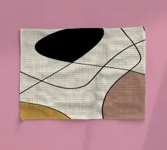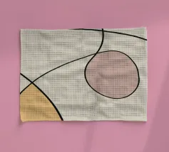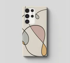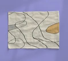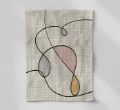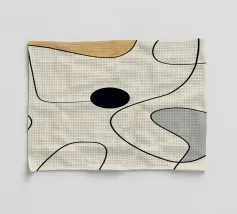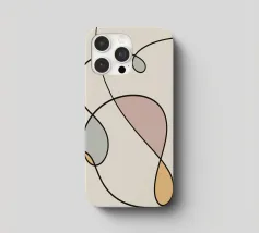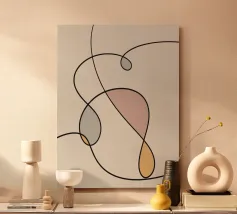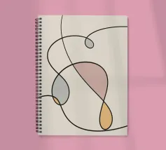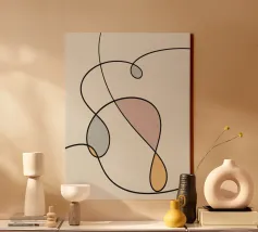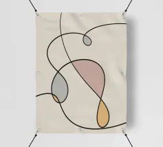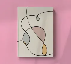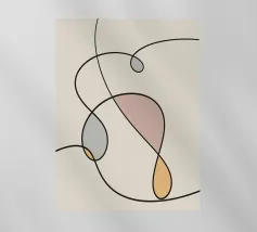 Una serie di linee nere morbide e curve creano un disegno astratto su uno sfondo chiaro. All'interno delle curve sono presenti alcune forme colorate, tra cui quella che sembra essere una goccia in grigio, rosa e giallo.