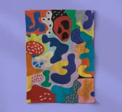 Una composizione astratta giocosa e colorata con una serie di forme organiche simili a blob di varie dimensioni e tonalità. La disposizione stravagante e la tavolozza vibrante creano un senso di gioia spontanea e libertà artistica.