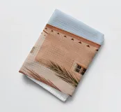 Atmosfera marocchina. Fotografia di strada in Marocco. Edificio in argilla e palma. Scena botanica di strada.