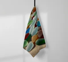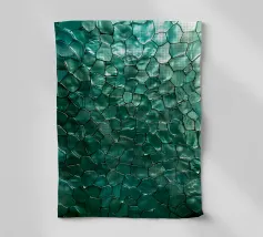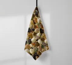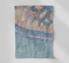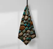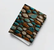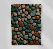 Questo mosaico presenta una varietà di pietre lisce nei toni del blu, del turchese e della terra, creando un design accattivante perfetto per le superfici decorative.