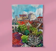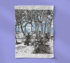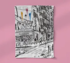 Le nuvole che si stendono sulla città di Barcellona sono dinamiche. Guardando dal tetto del mio appartamento, posso vedere il mare scintillante oltre la città sulla destra. Davanti a me si apre un mondo diverso che non si può vedere dalla strada. Questo è un disegno che ho fatto dal vivo.