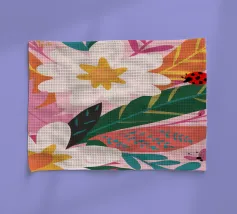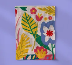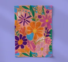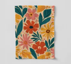 Una bella macchia di fiori selvatici stilizzati e stravaganti è illustrata in un affascinante stile ispirato all'arte popolare, con un delizioso mix di colori e forme che irradiano gioia e bellezza naturale.
