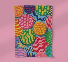 Una vibrante fusione di estetica moderna di metà secolo e boho, questo motivo ispirato al paisley presenta intricati dettagli patchwork con motivi geometrici, floreali e astratti. I toni terrosi dell'arancione, del marrone e del crema si stagliano su uno sfondo verde acqua, creando un'atmosfera nostalgica ma fresca. Perfetto per arredare la casa in stile retrò, per creare una parete elegante o per creare tessuti di grande effetto.