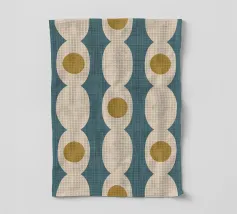 Una vibrante fusione di estetica moderna di metà secolo e boho, questo motivo ispirato al paisley presenta intricati dettagli patchwork con motivi geometrici, floreali e astratti. I toni terrosi dell'arancione, del marrone e del crema si stagliano su uno sfondo verde acqua, creando un'atmosfera nostalgica ma fresca. Perfetto per arredare la casa in stile retrò, per creare una parete elegante o per creare tessuti di grande effetto.