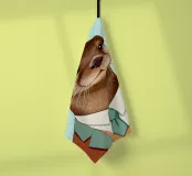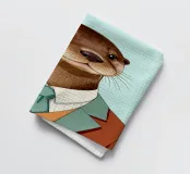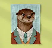 Illustrazione altamente dettagliata e sofisticata di una lontra vestita con giacca e cravatta in stile vintage.