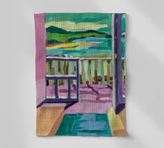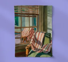 Un balcone assolato reso con luci e ombre drammatiche, dove il silenzio parla più delle parole grazie a una composizione minimalista.