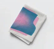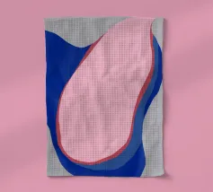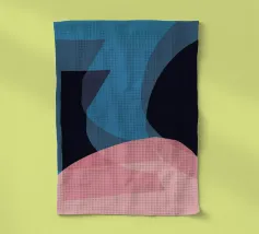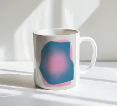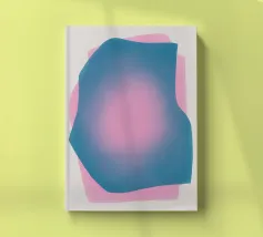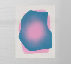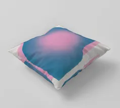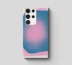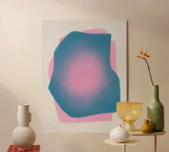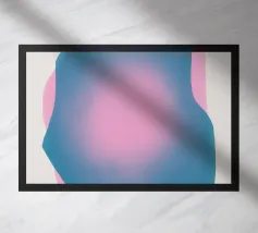Un morbido gradiente fonde il blu e il rosa vibranti, formando forme organiche astratte e sovrapposte. Le transizioni morbide e il bagliore etereo creano una visione rilassante.