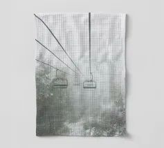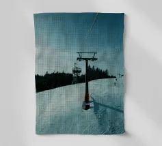 Sciatore in ascensore fotografato dal basso sulle Alpi (Spitzingsee), di Simon Koy.