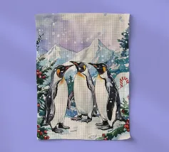 Un disegno invernale pieno di tenerezza, con allegri pinguini che passeggiano tra fiocchi di neve colorati su uno sfondo di neve e ghiaccio. Perfetta per creare un'atmosfera polare morbida e festosa, questa immagine farà la gioia degli amanti dei pinguini e dei simpatici pinguini, dell'inverno e della magia della neve. Ideale per decorazioni stagionali, camerette dei bambini o qualsiasi spazio che richieda freschezza, gioia e gelida meraviglia.